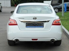 Если черный цвет придает автомобилю статусности, а белый – эффектности, то бордовый окрас делает Nissan Teana элегантной. Агрессивные нотки в дизайне прослеживаются в виде низкой крыши, треугольной формы головной оптики и массивных бамперах – все это привлекает внимание окружающих. Впрочем, «Теана» остается «Теаной», поэтому также демонстрирует выразительные кузовные линии и некоторый налет лоска, который выражается хромированными элементами. Этот седан можно назвать компромиссом между юношескими амбициями и деловой сдержанностью – Nissan будет уместно смотреться как на парковке делового центра, так и возле входа модного ночного клуба.